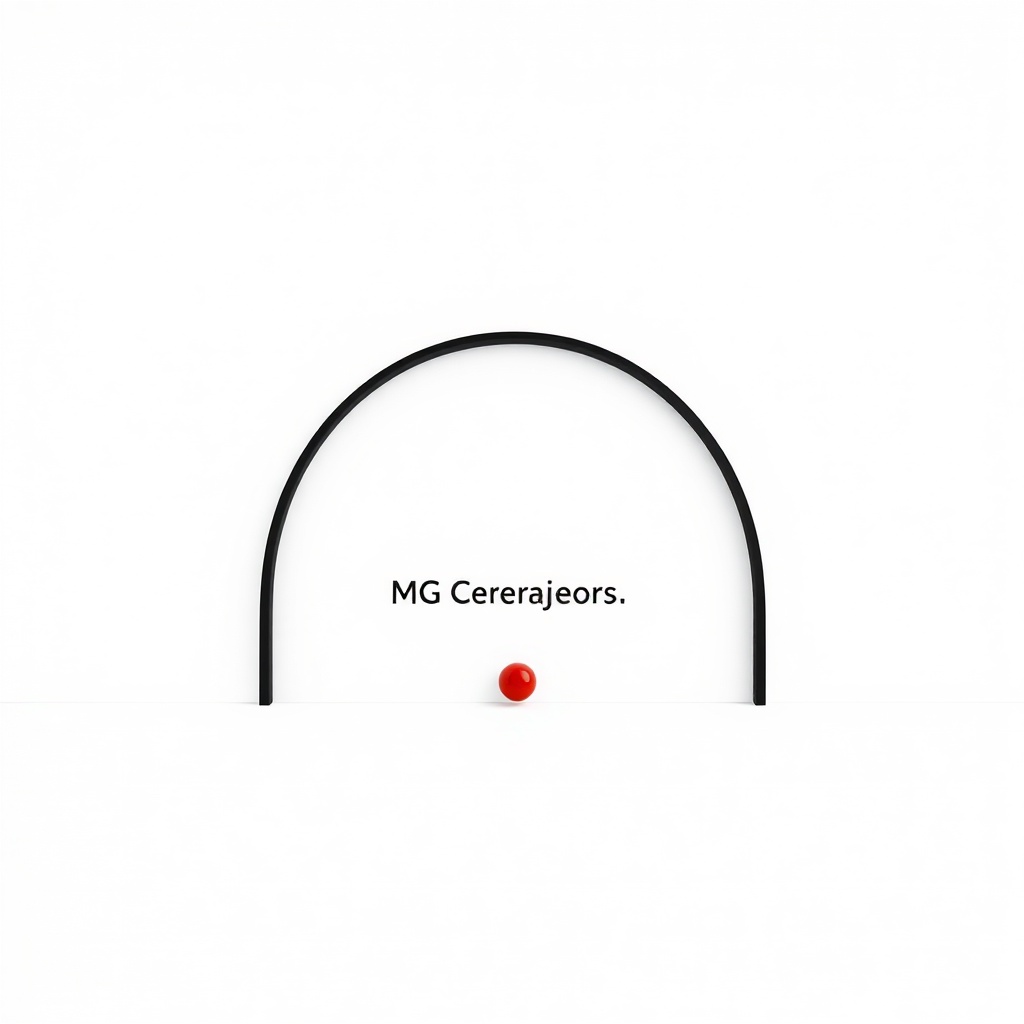 Arco negro semicircular en fondo blanco con círculo rojo, diseño geométrico limpio, ideal para "Como elegir la mejor cerradura para una casa en Mataro".