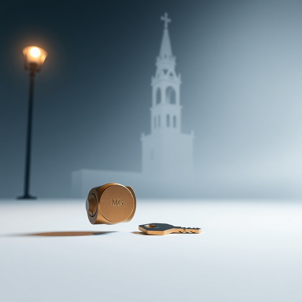Cerradura de acero mate y llave geométrica sobre fondo blanco; imagen que evoca "Que servicios de cerrajeria ofrecen mejor seguridad en Mataro".