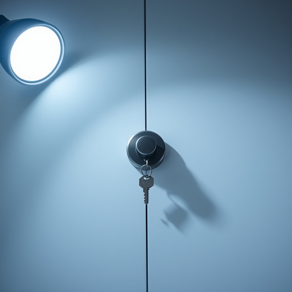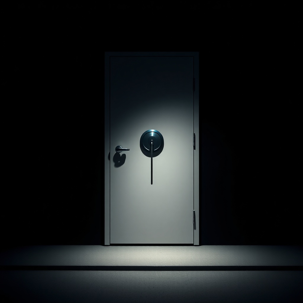 Composición minimalista con puerta y cerradura, evocando tensión; ideal para ilustrar "Que tipos de cerrajerias en Mataro ofrecen servicios urgentes de apertura de puertas".