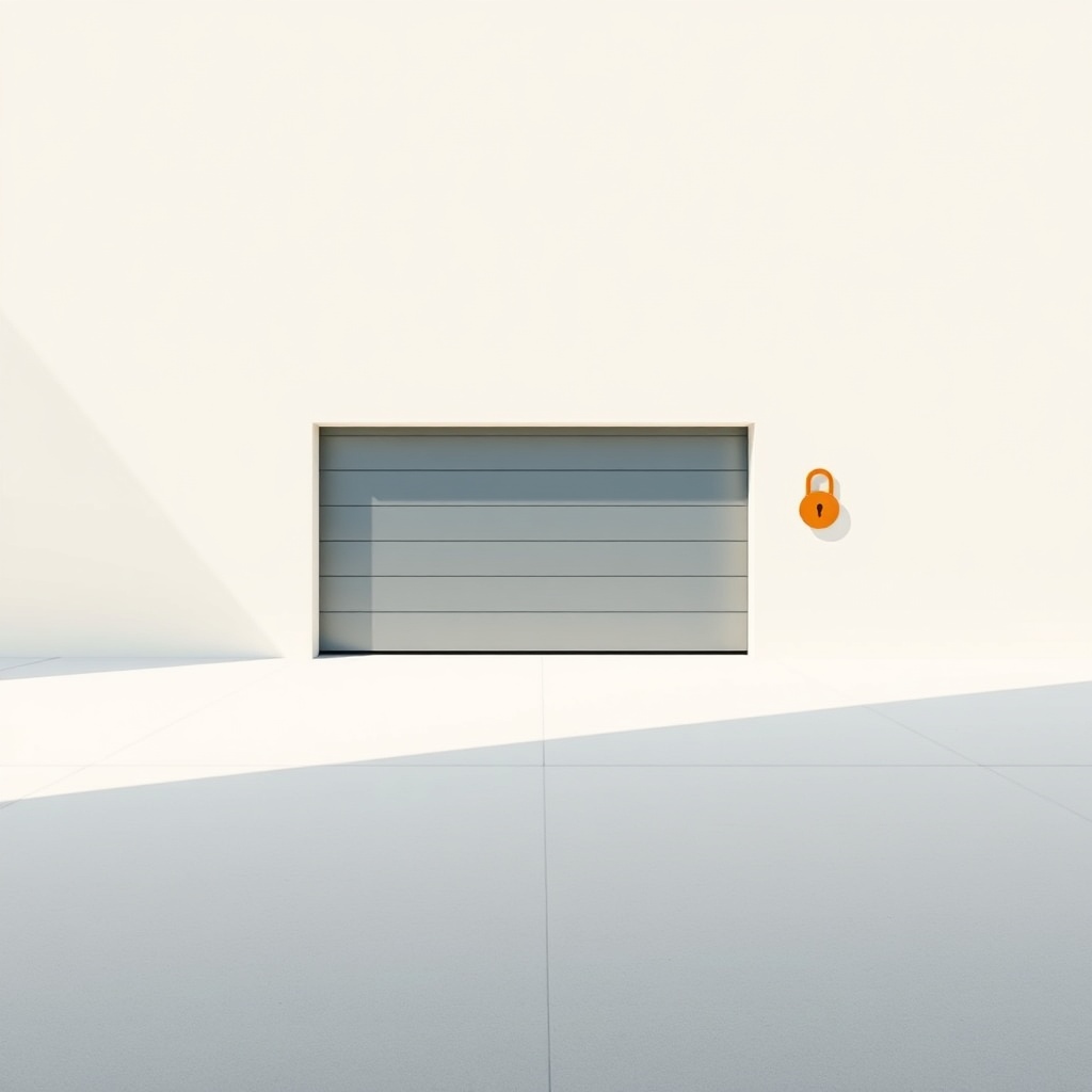 Puerta de garaje geométrica con candado, en un fondo suave, simboliza los servicios de cerrajería en Mataró.